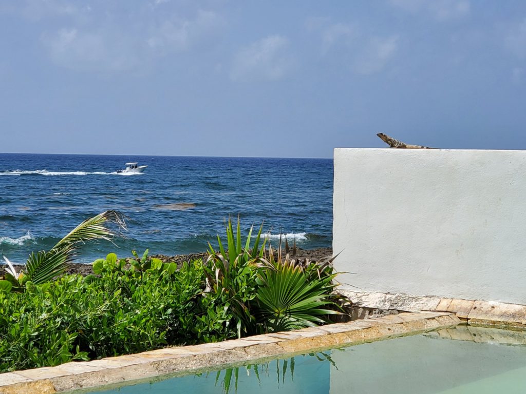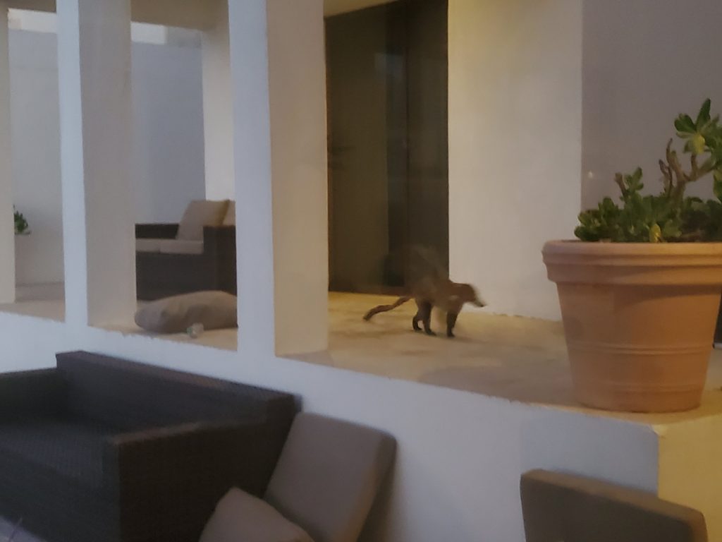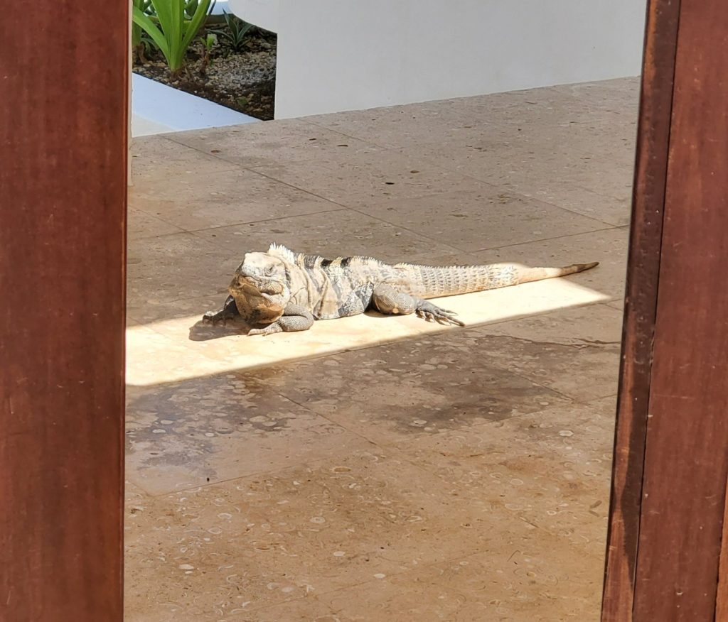 Sorry the picture isn’t better but I was panicking a little. At the time I did not know what it was. It wouldn’t have mattered if I did anyway because I was out of there. I snuck into the main house through the back door. Thank God the house had so many entry doors. Four to be exact. One on every side of the house. After sniffing around on the lanai, we made eye contact through the window and he ran off. It seemed as if I was the main person who had the animal encounters. Lol. This little one chilled with me by the pool when the others went to see the Mayan Ruins.