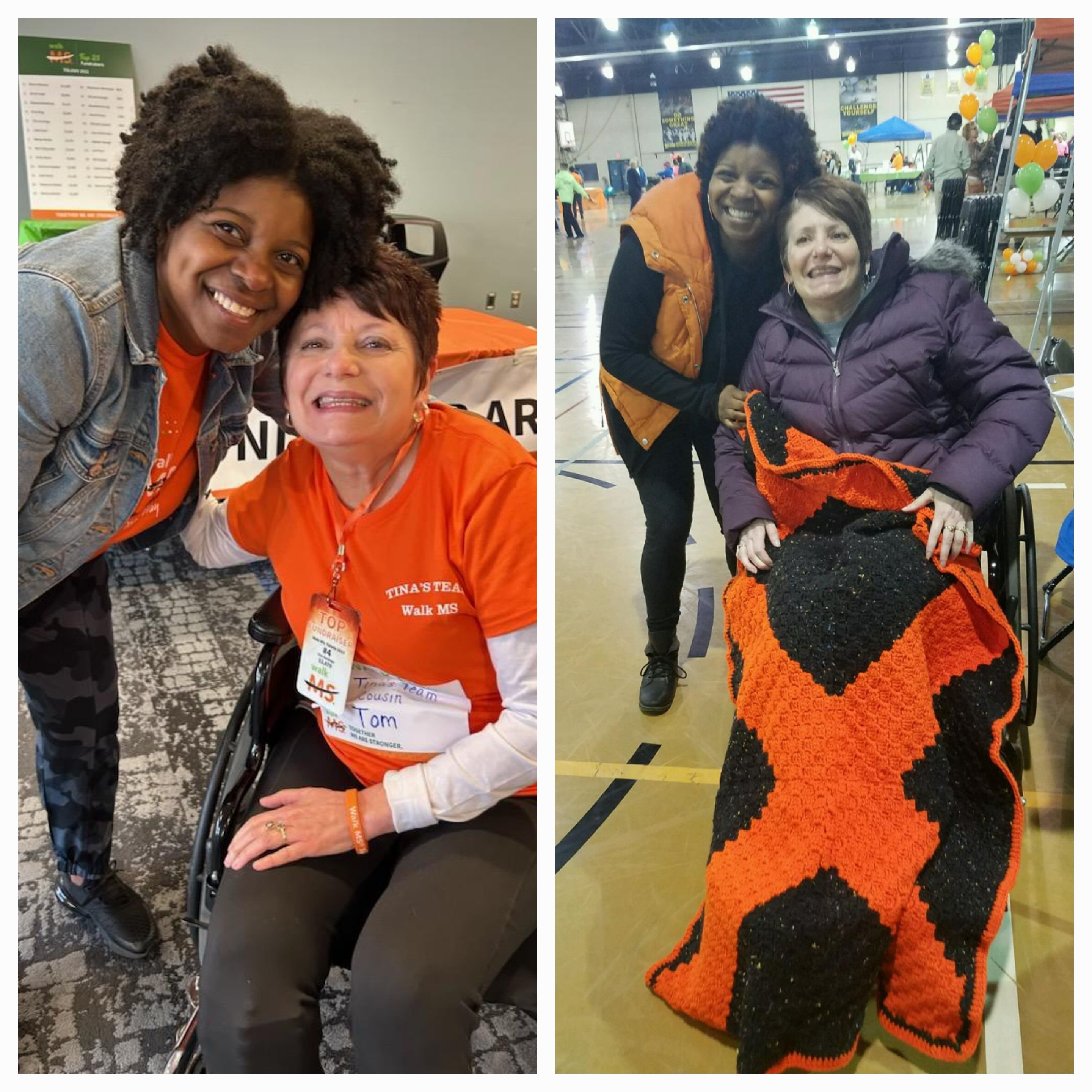 I made my first MS blanket to give to an MS warrior in 2017. I wasn’t sure of the process I would use to choose the person to give the blanket to. I just wanted God to lead me to that person. God led me to Tina Santiago. I reunited with Tina and her team and we took an updated picture.