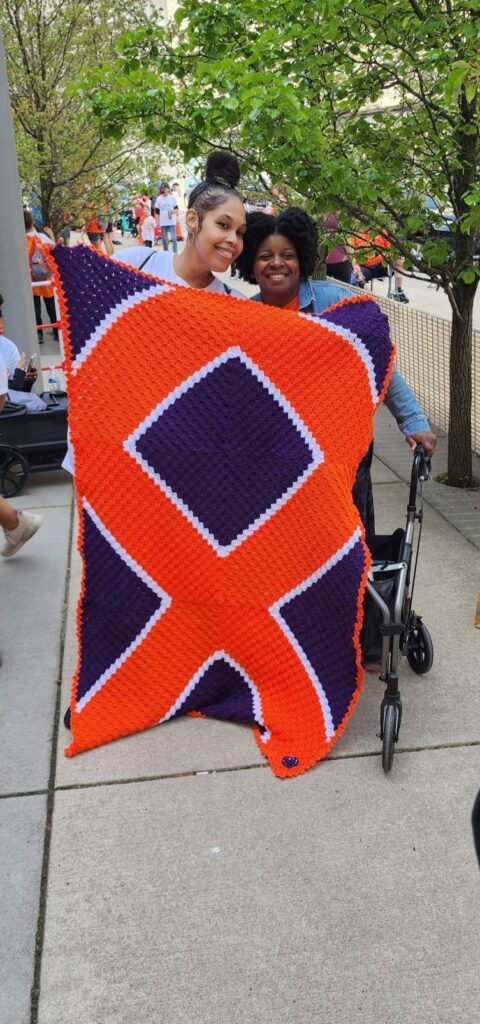 And y’all know I had to crochet an MS blanket for the walk in my hometown. Once I realized I would be in town the same weekend as the walk, I got busy. I worked hard on this one! I knew I wanted to give it to this beautiful woman, Joy Norwood, and she is tall so I made it bigger than normal size.