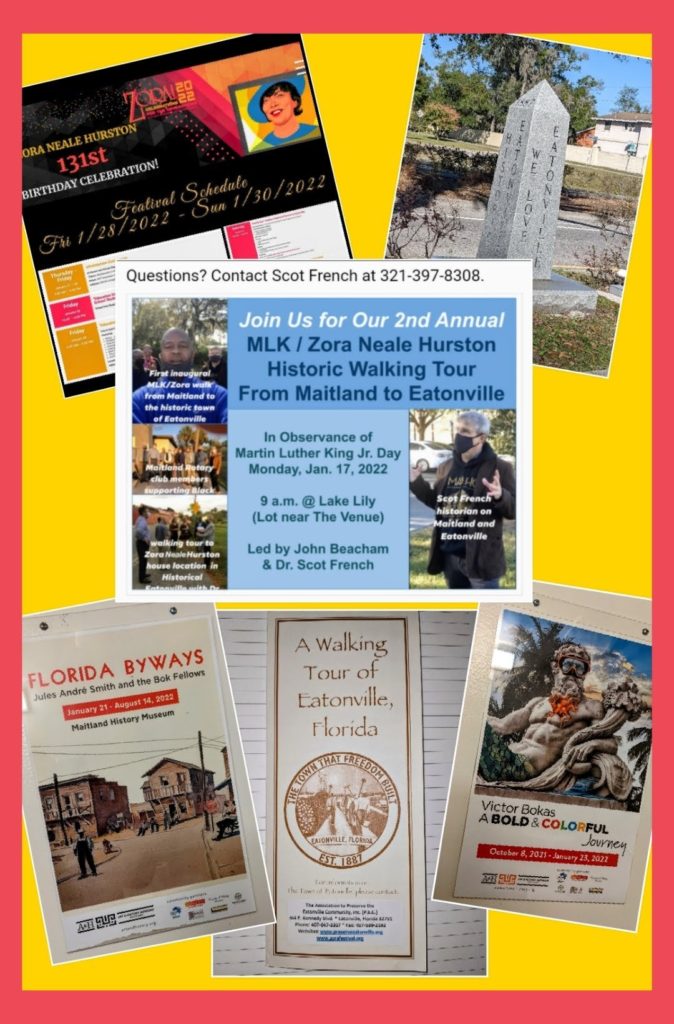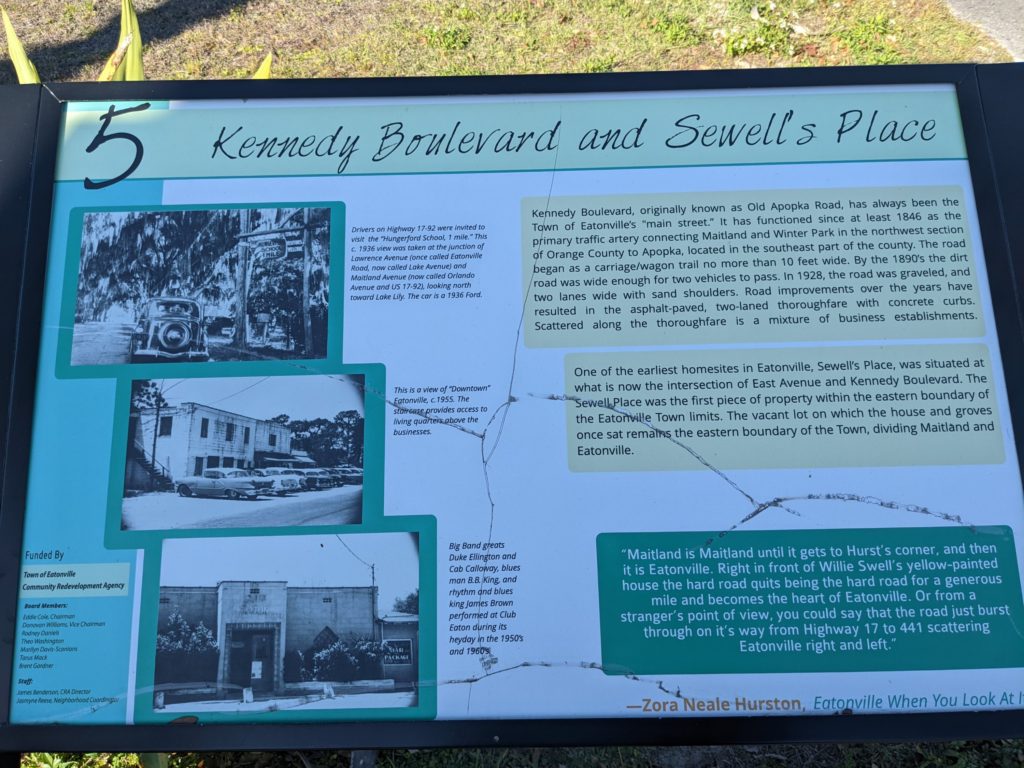 I recently visited my cousin who lives in Winter Park, Florida. She drove me around and showed me the area, lakes, houses, parks and historical sites. We rode through the town of Eatonville, Florida. Eatonville, incorporated in 1887, is considered to be one of the first black American towns. Being as I had never heard of it before visiting my cousin, I was definitely interested in this town’s story. I was able to get a couple snapshots, but nothing substantial. My cousin, however, attended a historic walking tour in honor of Dr. Martin Luther King, Jr. and Zora Neale Hurston in Eatonville, where she was able to get some good pictures, which I will be sharing in this post.
